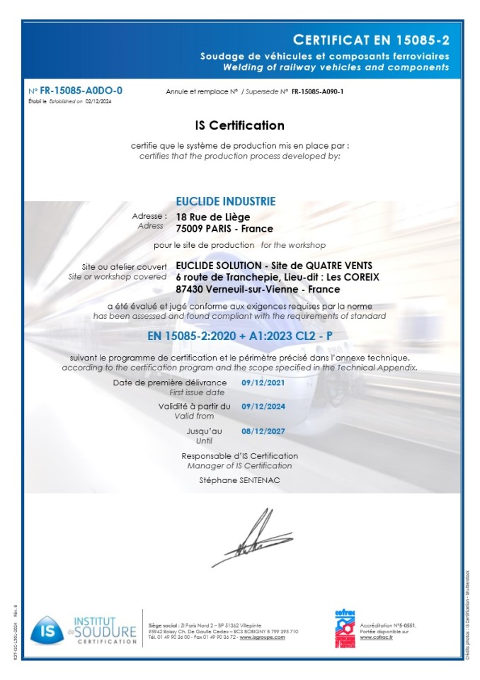 EUCLIDE INDUSTRIE est un acteur industriel engagé dans une démarche qualité forte. Nos équipes sont impliquées dans le maintien d’un système qualité efficace, capable de répondre aux besoins actuels de nos clients et d’anticiper leurs demandes futures.